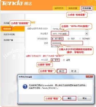 8、修改无线密码和无线信号名称,点击“无线设置”-“无线安全”,设置无线密码。