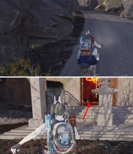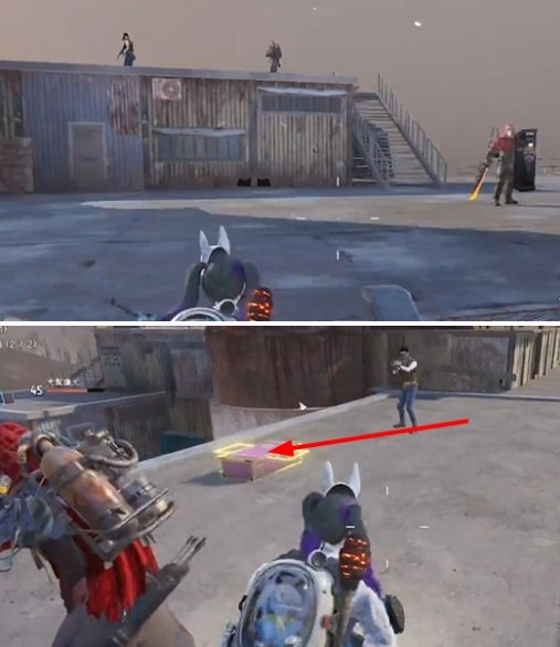 4、到达图中位置,再上楼梯,在顶部有个箱子。